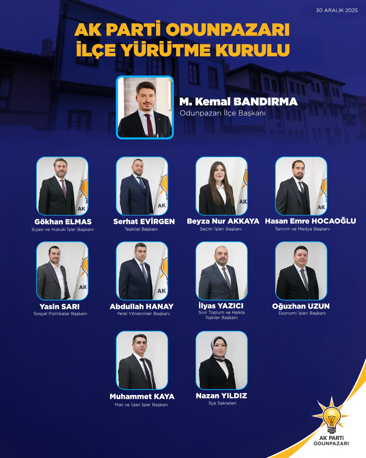 Odunpazarı İlçe Başkanı Mustafa Kemal Bandırma başkanlığında oluşturan listede şu isimler yer aldı: