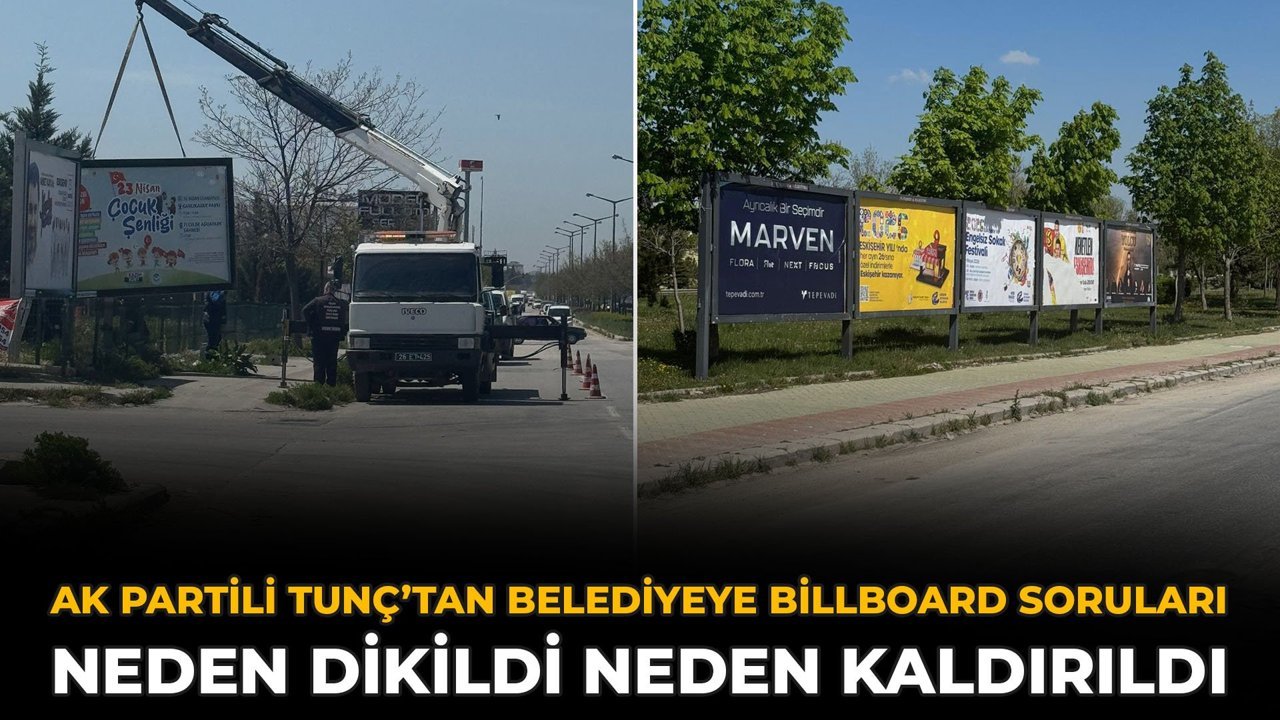 Eskişehir’in Tepebaşı ilçesine bağlı Teksan bölgesinde son haftalarda kurulan billboardlar, sökülmeye başlanmasıyla birlikte tartışma konusu oldu. AK Parti Tepebaşı İlçe Başkanı Serhat Tunç, sosyal medya hesabından yaptığı açıklamada sürece ilişkin sorular yöneltti.