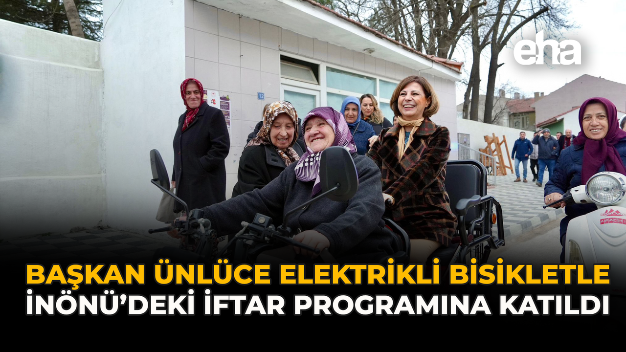 İftar programı İnönü İlçesinde Kapalı Pazar Yeri’nde düzenlendi. Eskişehir Büyükşehir Belediye Başkanı Ayşe Ünlüce, Kapalı Pazar Yeri’ne bir vatandaşın Elektrikli bisikletiyle geldi.