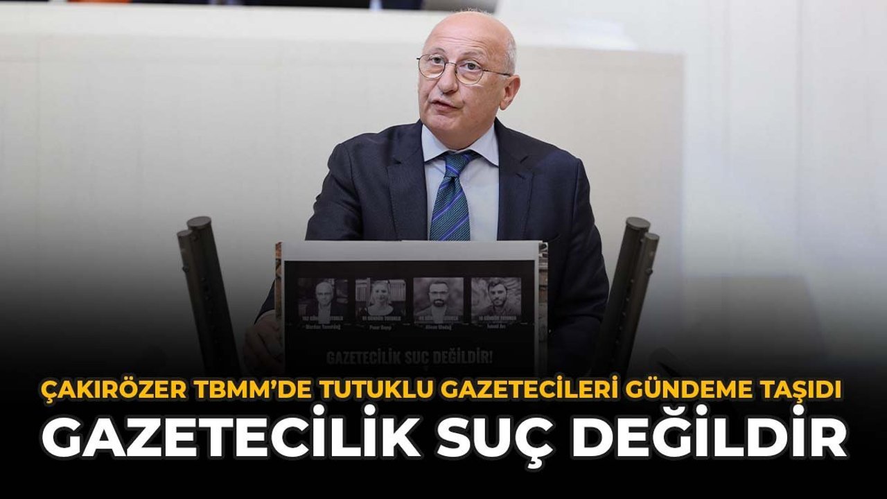 CHP Eskişehir Milletvekili Utku Çakırözer, TBMM’de yaptığı konuşmada gazetecilerin tutuklanması ve basın özgürlüğü ihlallerine dikkat çekti. Alican Uludağ, İsmail Arı, Merdan Yanardağ ve Pınar Gayıp gibi gazetecilerin durumunu gündeme taşıyan Çakırözer, gazeteciler için özgürlük ve adalet çağrısında bulundu.