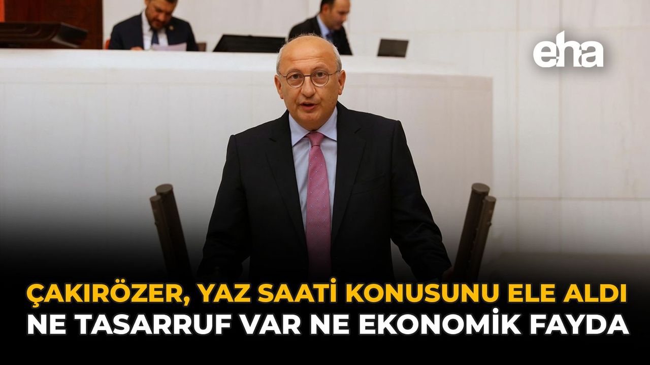 Çakırözer, kalıcı yaz saati uygulamasının 2016’dan bu yana sürdürülmesine tepki göstererek, “Geçen hafta yaz saati uygulaması tüm dünyada sona erdi. Gün ışığından faydalanmak için saatler Türkiye'de ise alınmadı ve yediden yetmişe bu millete kör karanlıkla yatması sürüyor. 2016 yılından bu yana bu kürsüden defalarca çağrıda bulunuldu. Ama bu öylesine bir inat ki bu kör inat yüzünden çocuklarımız yine karanlıkta uyanmak, gözleri kapalı okula gitmek zorunda. Emekçimiz, memurumuz, esnafımız karanlıkta yarı uyur işine gitmek zorunda kalıyor. Yüz binlerce çalışan, sabah karanlıkta işine girip akşam karanlıkta evine dönüyor. Gün ışığı göremiyor.” dedi.