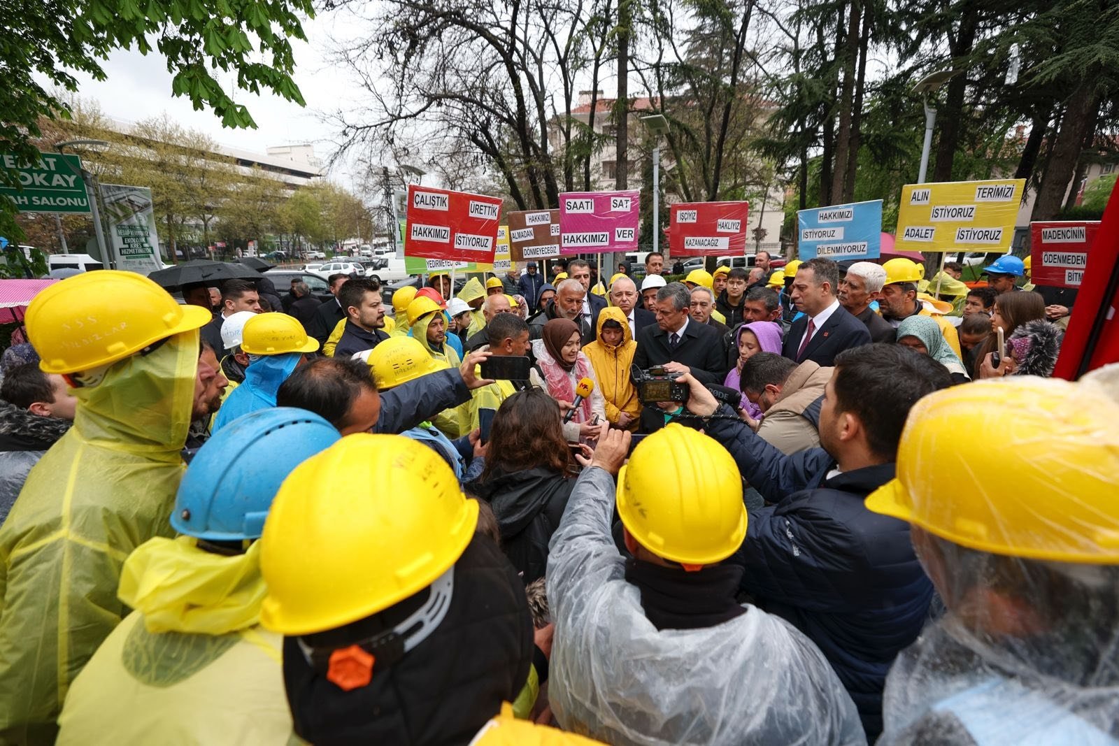Soma örneğini hatırlatan Özel, işçilerin haklarını sendikal mücadeleyle elde edebileceğini ifade ederek “Bağımsız Maden İş’in kurucu başkanı emek mücadelesi verirken yaşamını yitirdi. Bugün 23 Nisan Çocuk Bayramı; madenci çocukları ve eşleri hakları için buraya geldiler. Önünde sonunda hakkınızı alacaksınız. Biz sizin desteklemeye, evlatlarınızın yanında olmaya devam edeceğiz” diye konuştu.