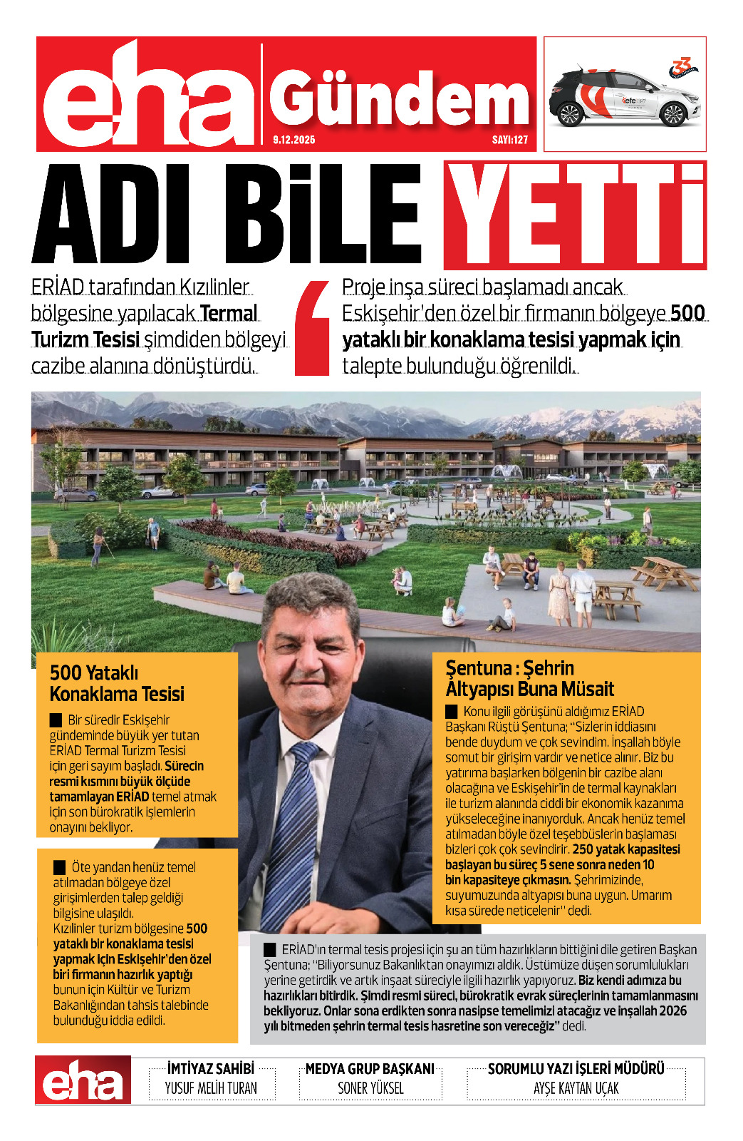 Bir süredir Eskişehir gündeminde büyük yer tutan ERİAD Termal Turizm Tesisi için geri sayım başladı. Sürecin resmi kısmını büyük ölçüde tamamlayan ERİAD temel atmak için son bürokratik işlemlerin onayını bekliyor.