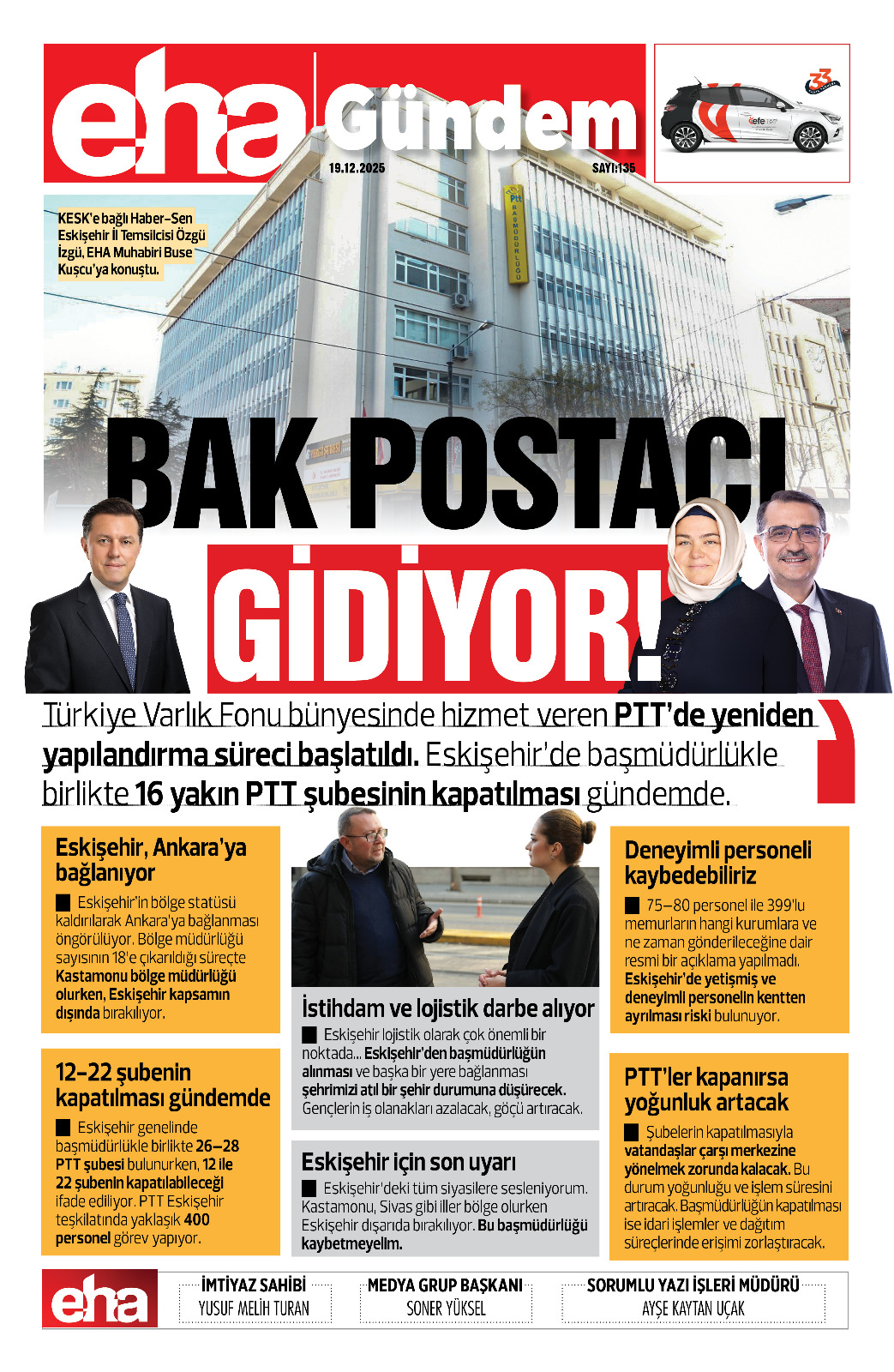Eskişehir genelinde başmüdürlükle birlikte 26–28 PTT şubesi bulunurken, 12 ile 22 şubenin kapatılabileceği ifade ediliyor. PTT Eskişehir teşkilatında yaklaşık 400 personel görev yapıyor.