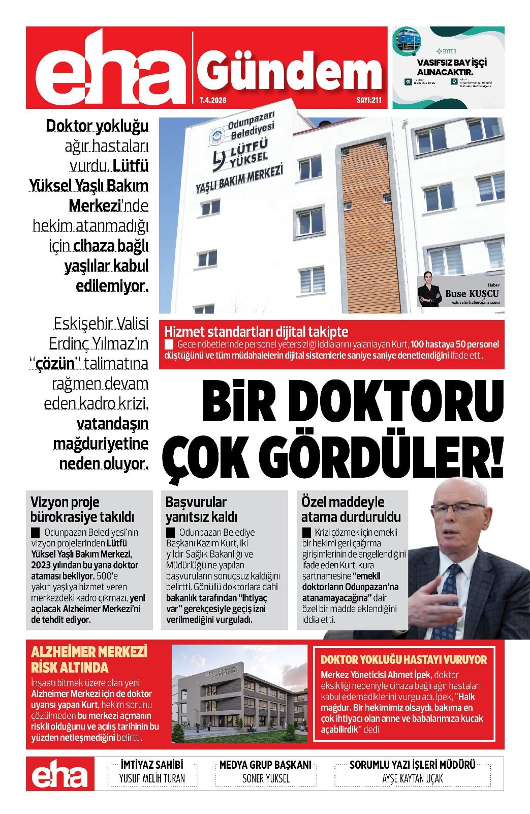 Odunpazarı Belediyesi’nin vizyon projelerinden Lütfü Yüksel Yaşlı Bakım Merkezi, 2023 yılından bu yana doktor ataması bekliyor. 500’e yakın yaşlıya hizmet veren merkezdeki kadro çıkmazı, yeni açılacak Alzheimer Merkezi’ni de tehdit ediyor.