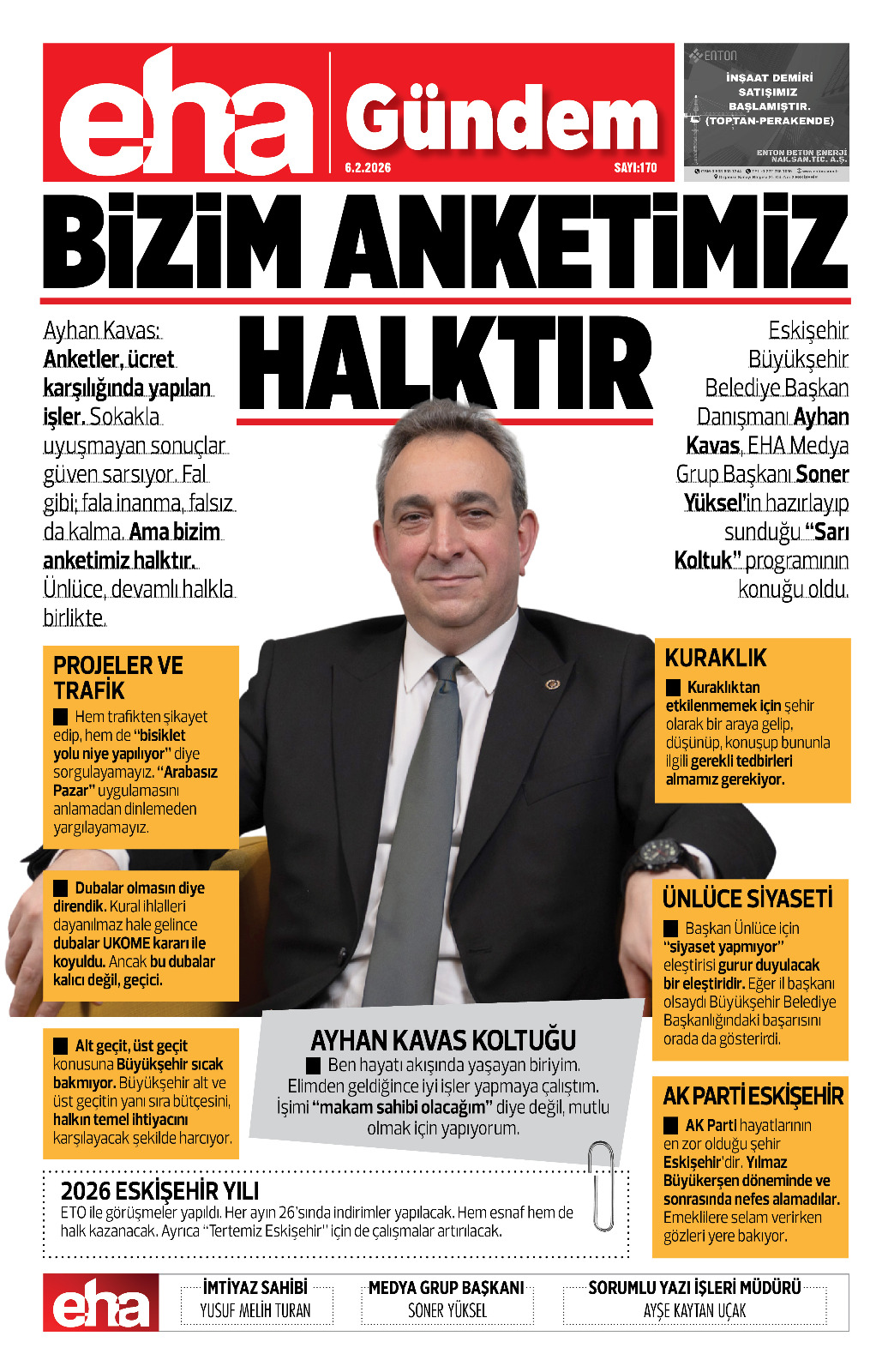 ETO ile görüşmeler yapıldı. Her ayın 26’sında indirimler yapılacak. Hem esnaf hem de halk kazanacak. Ayrıca “Tertemiz Eskişehir” için de çalışmalar artırılacak.
