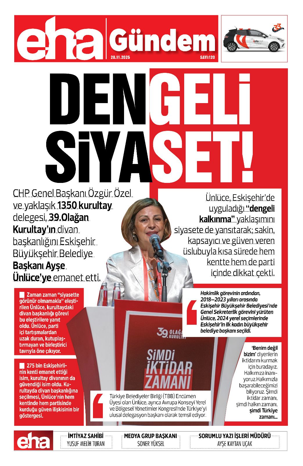 275 bin Eskişehirlinin kenti emanet ettiği isim, kurultay divanının da güvendiği isim oldu. Kurultayda divan başkanlığına seçilmesi, Ünlüce’nin hem kentinde hem partisinde kurduğu güven ilişkisinin bir göstergesi.