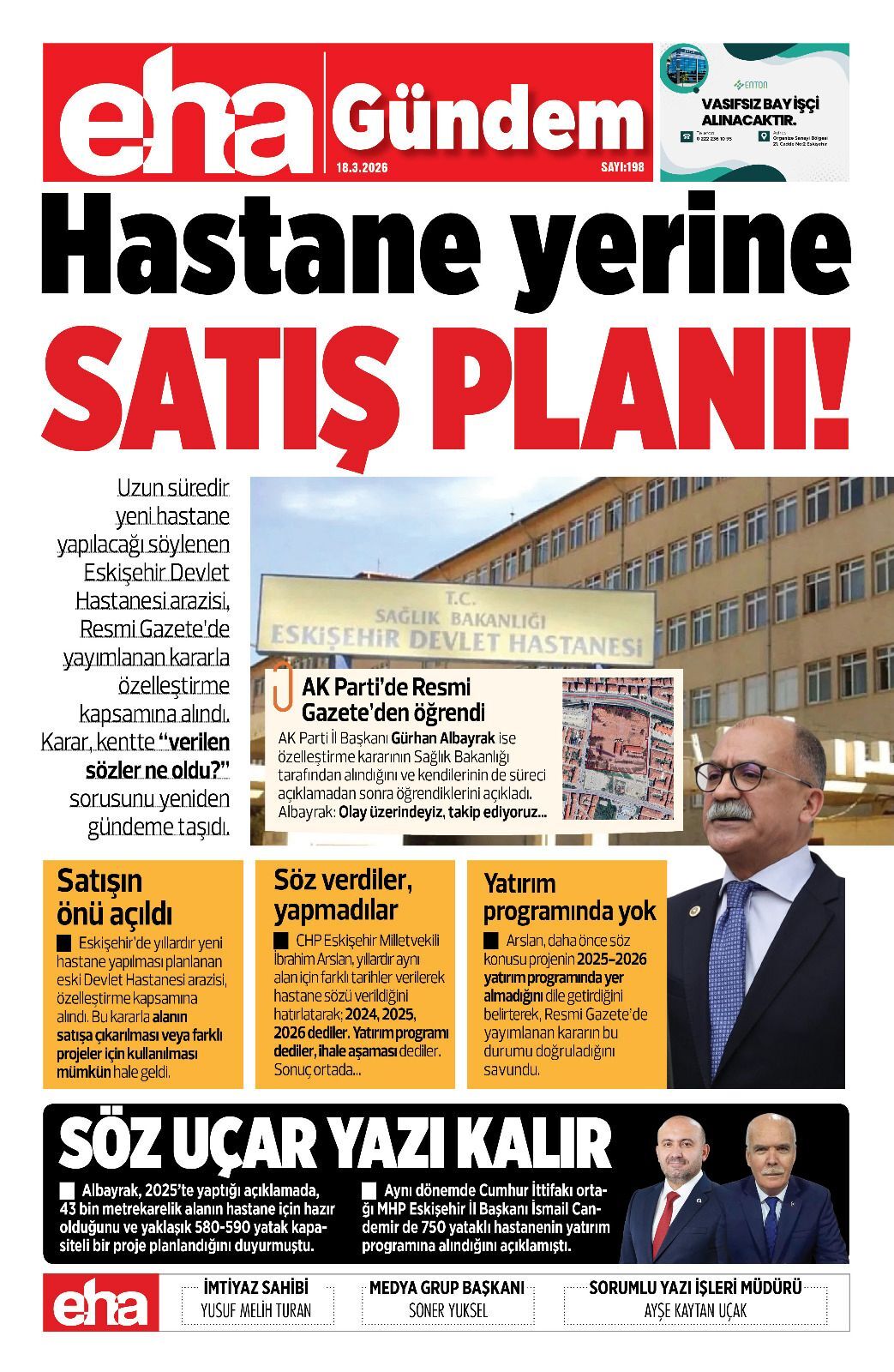 AK Parti İl Başkanı Gürhan Albayrak ise özelleştirme kararının Sağlık Bakanlığı tarafından alındığını ve kendilerinin de süreci açıklamadan sonra öğrendiklerini açıkladı. Albayrak: Olay üzerindeyiz, takip ediyoruz…