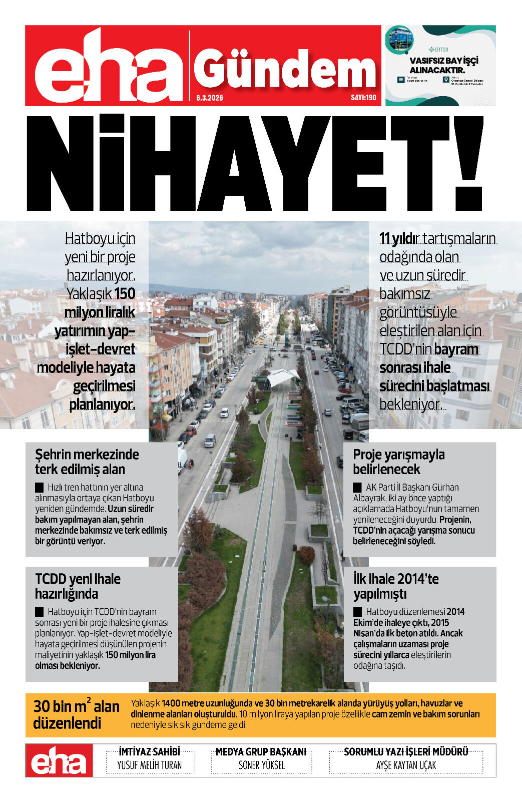 Hızlı tren hattının yer altına alınmasıyla ortaya çıkan Hatboyu yeniden gündemde. Uzun süredir bakım yapılmayan alan, şehrin merkezinde bakımsız ve terk edilmiş bir görüntü veriyor.