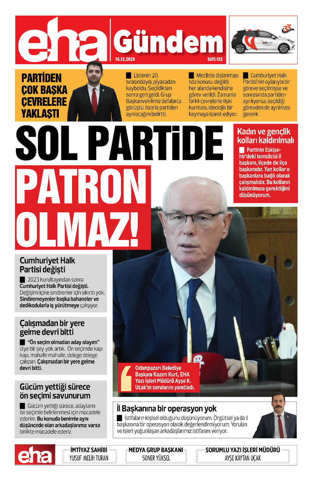 Partinin Eskişehir’deki temsilcisi il başkanı, ilçede de ilçe başkanıdır. Yan kollar o başkanlara bağlı olarak çalışmalıdır. Bu kolların kaldırılması gerektiğini düşünüyorum.