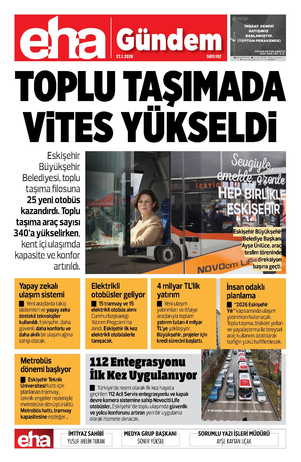 Yeni araçlarda takip sistemleri ve yapay zeka destekli teknolojiler kullanıldı. Eskişehir, daha güvenli, daha konforlu ve daha akıllı bir ulaşım ağına sahip olacak.