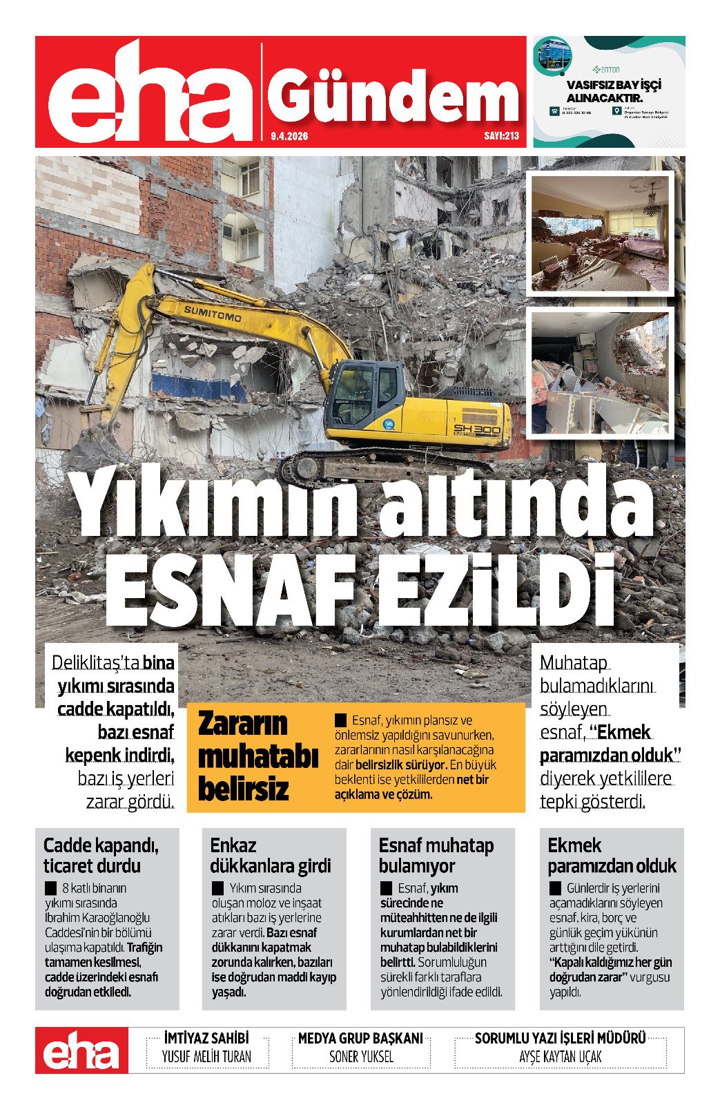 Esnaf, yıkımın plansız ve önlemsiz yapıldığını savunurken, zararlarının nasıl karşılanacağına dair belirsizlik sürüyor. En büyük beklenti ise yetkililerden net bir açıklama ve çözüm.