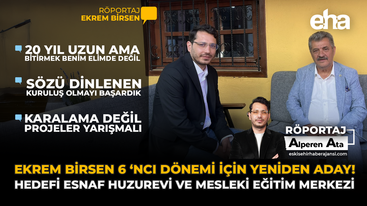 2005 yılından bu yana başkanlık görevini sürdüren Ekrem Birsen, 6’ncı dönemi için yeniden aday olduğunu açıkladı. Eskişehir Haber Ajansı’ndan (EHA) Alperen Ata’nın sorularını yanıtlayan Birsen, hem 20 yıllık hizmet süresini değerlendirdi hem de yöneltilen eleştirilere yanıt verdi.