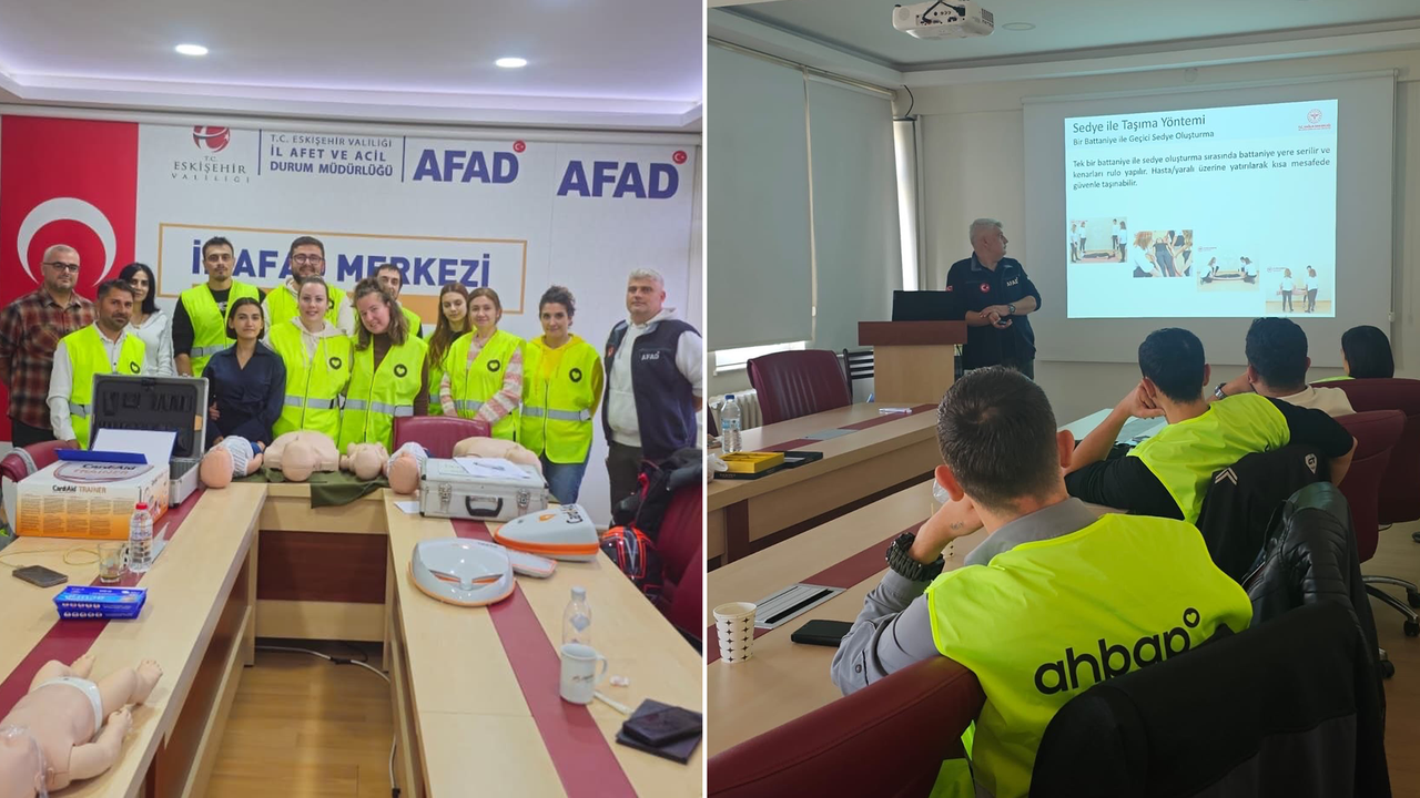 Afet ve acil durumlarda doğru müdahale bilincini artırmak amacıyla düzenlenen ilk yardım eğitimlerinin 2. grubu tamamlandı. Eğitim kapsamında AHBAP gönüllülerine; temel ilkyardım uygulamaları, bilinç kontrolü, yaralanmalarda ve kırıklarda yapılması gerekenler ile acil durum iletişimi konularında bilgi ve uygulamalı eğitim verildi. Gönüllülerin afetlere karşı hazırlıklı ve bilinçli olması için eğitimlerin devam ettiği aktarıldı.