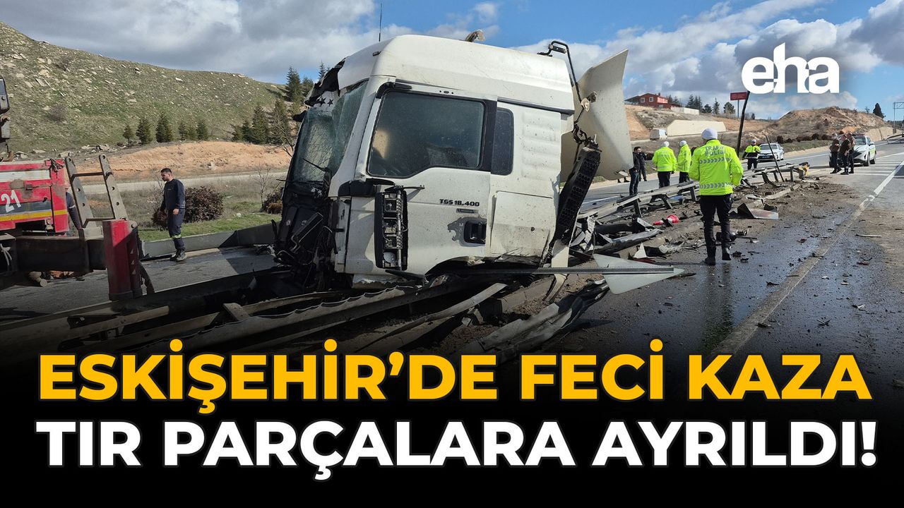 Çarpmanın etkisiyle yerinden kopan tabela tırla birlikte savruldu. Bariyerlere de çarpan aracın ön kabini orta refüje düşerken, yol adeta savaş alanına döndü.