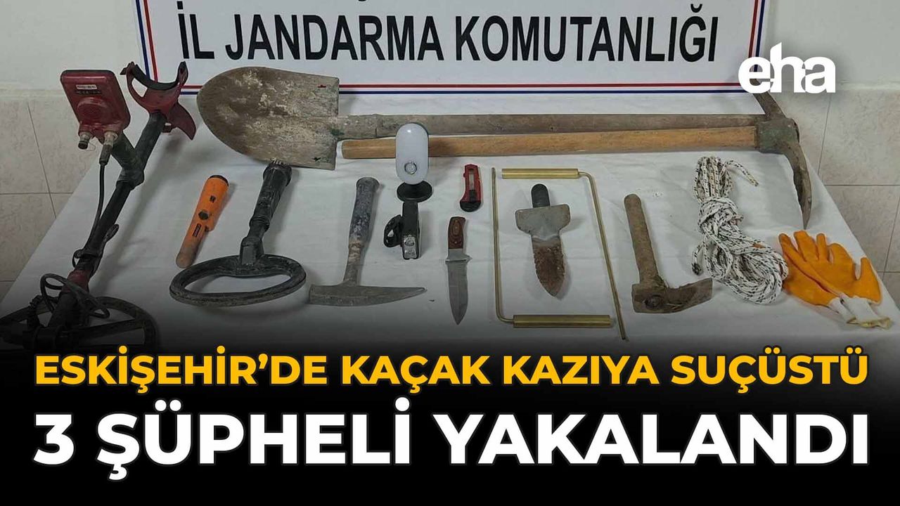 Anadolu Mirası Operasyonları kapsamında gerçekleştirilen operasyonda 3 şüpheli, kaçak kazı yaparken suçüstü yakalandı. Kazı alanında yapılan incelemelerde şüphelilere ait olduğu belirlenen 3 adet dedektör, 8 metre halat, 1 adet kürek, 1 adet kazma ve 10 adet muhtelif kazı malzemesi ele geçirildi.