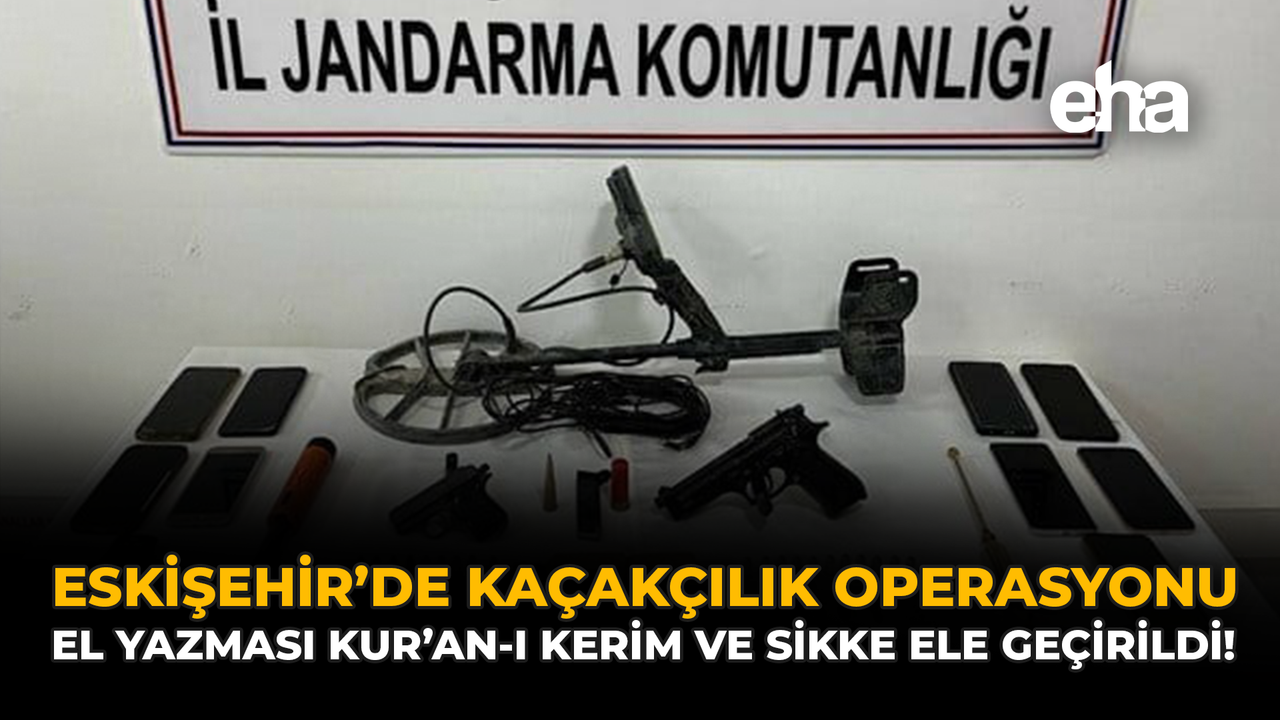 Eskişehir İl Jandarma Komutanlığı ekipleri, "Anadolu Mirası" operasyonları kapsamında define bulmak amacıyla izinsiz kazı yaptığı tespit edilen 10 şüphelinin ikametlerine eş zamanlı baskın yaptı. Adreslerde yapılan aramalarda 1 adet tarihi eser niteliği taşıyan el yazması Kur’an-ı Kerim, 9 adet bronz sikke ve obje, 1 adet ruhsatsız tabanca, 1 adet kurusıkı tabanca, 22 adet tabanca fişeği, 1 adet yılan kamera, 2 adet metal arama dedektörü ve 11 adet cep telefonu ele geçirildi. Şüpheliler hakkında çeşitli suçlardan soruşturma başlatıldı.