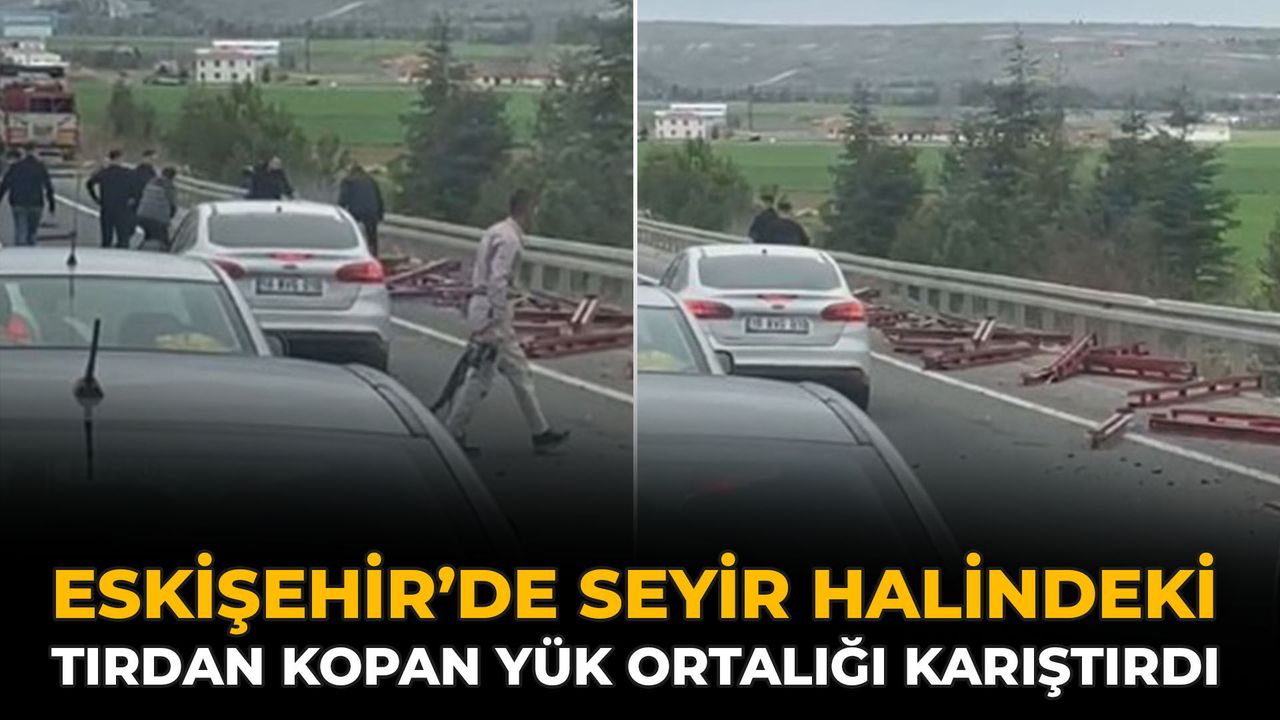 Eskişehir’de meydana gelen olayda, seyir halindeki bir tırdan düşen yükler trafikte tehlikeli anlara neden oldu. Sivrihisar-Polatlı kara yolunda yaşanan olayda, bir tırın dorsesinde taşınan profil demirler, bağlandığı halatların kopması sonucu yola dağıldı.