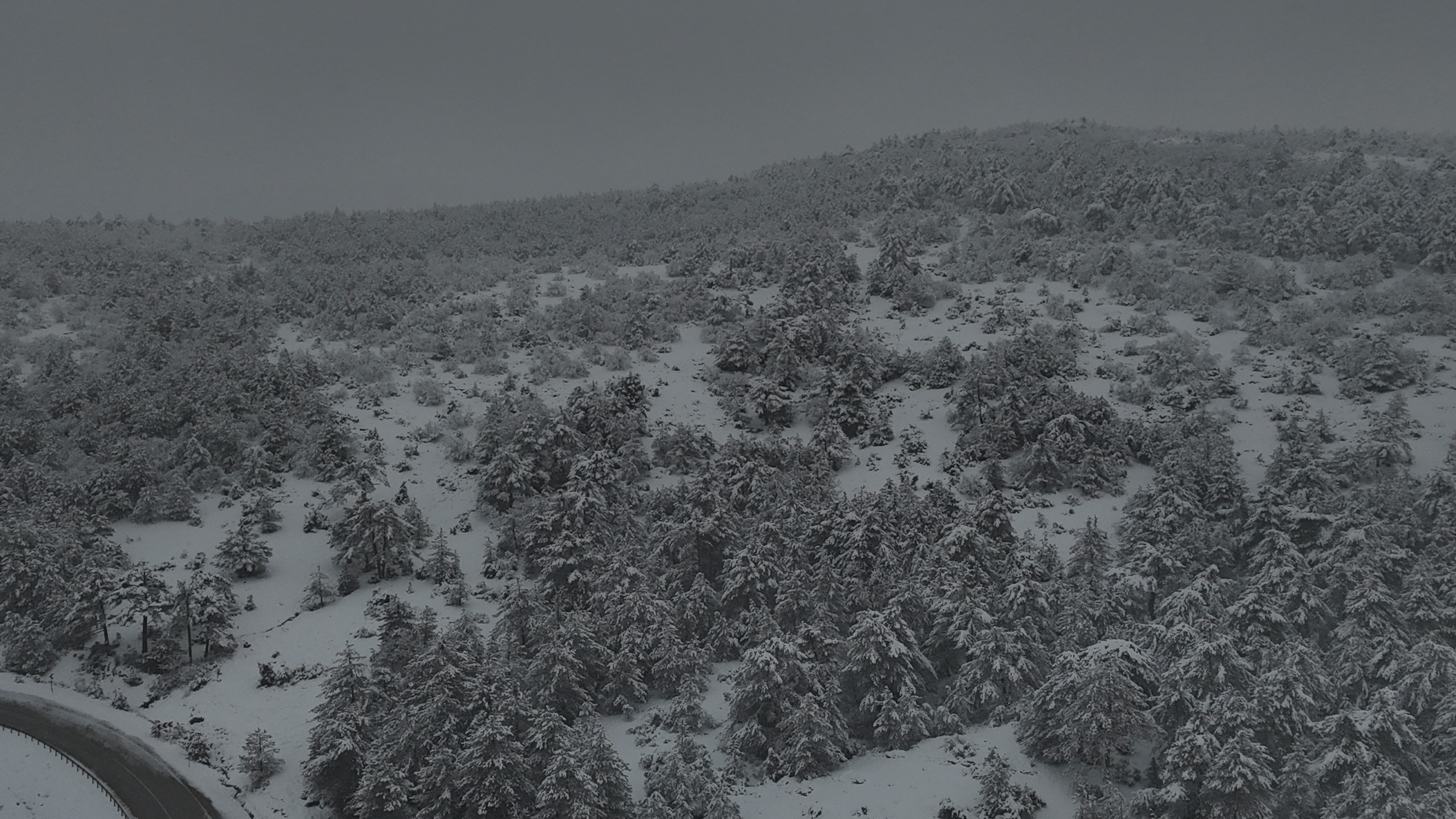 Yüksek rakımı nedeniyle kar yağışının etkisini yoğun şekilde gösterdiği Bozdağ’ın zirvesi, drone ile havadan görüntülendi. Beyaz örtüyle kaplanan dağ silueti, kışın tüm güzelliğini gözler önüne serdi.