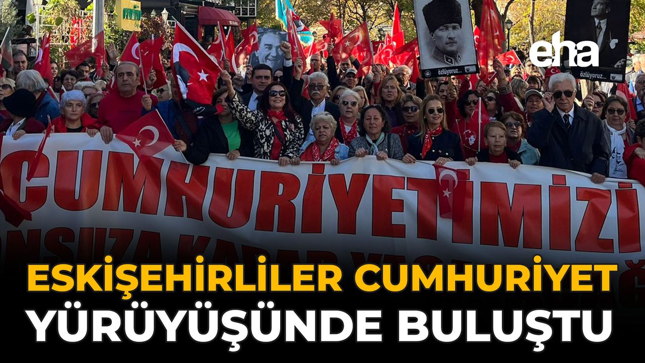 Yüzlerce Eskişehirli, ellerinde Türk bayraklarıyla marşlar eşliğinde yürüyerek Cumhuriyetin 102. yıl dönümünü coşkuyla kutladı. Yürüyüşte “Türkiye Laiktir Laik Kalacak”, Türküz Türkçüyüz” ve Mustafa Kemal’in Askerleriyiz” sloganları atıldı.