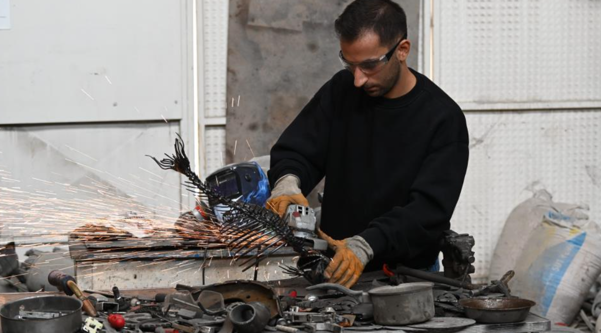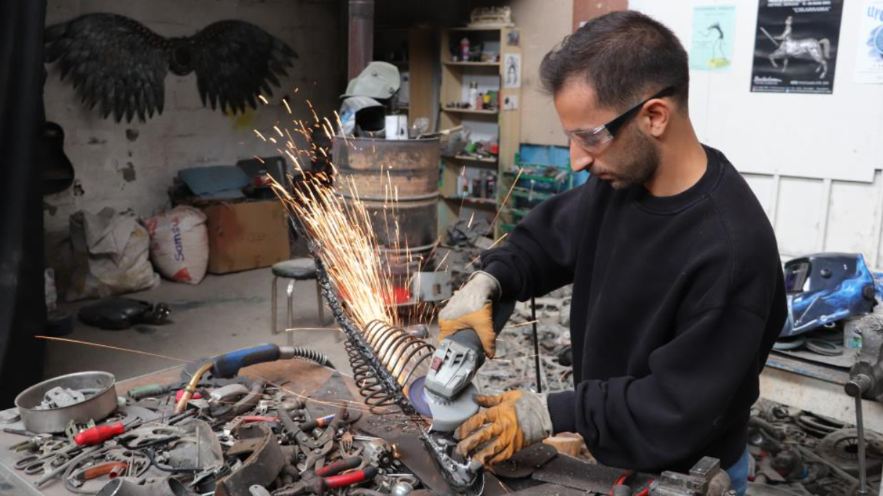 Anadolu Üniversitesi Güzel Sanatlar Fakültesi Heykel Bölümü mezunu 22 yaşındaki Mücahit Diyar Arız, Tepebaşı ilçesi Uluönder Mahallesi'ndeki atölyesinde çocukluktan gelen sanat tutkusunu, eğitimini aldığı heykelle birleştiriyor. Sanat hayatına hurdalıkta bulduğu bir yığın kaşıkla başlayan ve esas ilhamını aile mesleği olan balıkçılıktan alan genç sanatçı, eserlerinde özellikle metal malzemeleri kullanıyor. Metali tercih etme nedenini, "Farklı malzemeleri bir araya getirme" mottosuna bağlayan sanatçı, sanayi ortamının sunduğu kolay malzeme erişimi ve rahat çalışma şartlarını avantaja çevirerek tutkusunu geliştirmeyi hedefliyor.