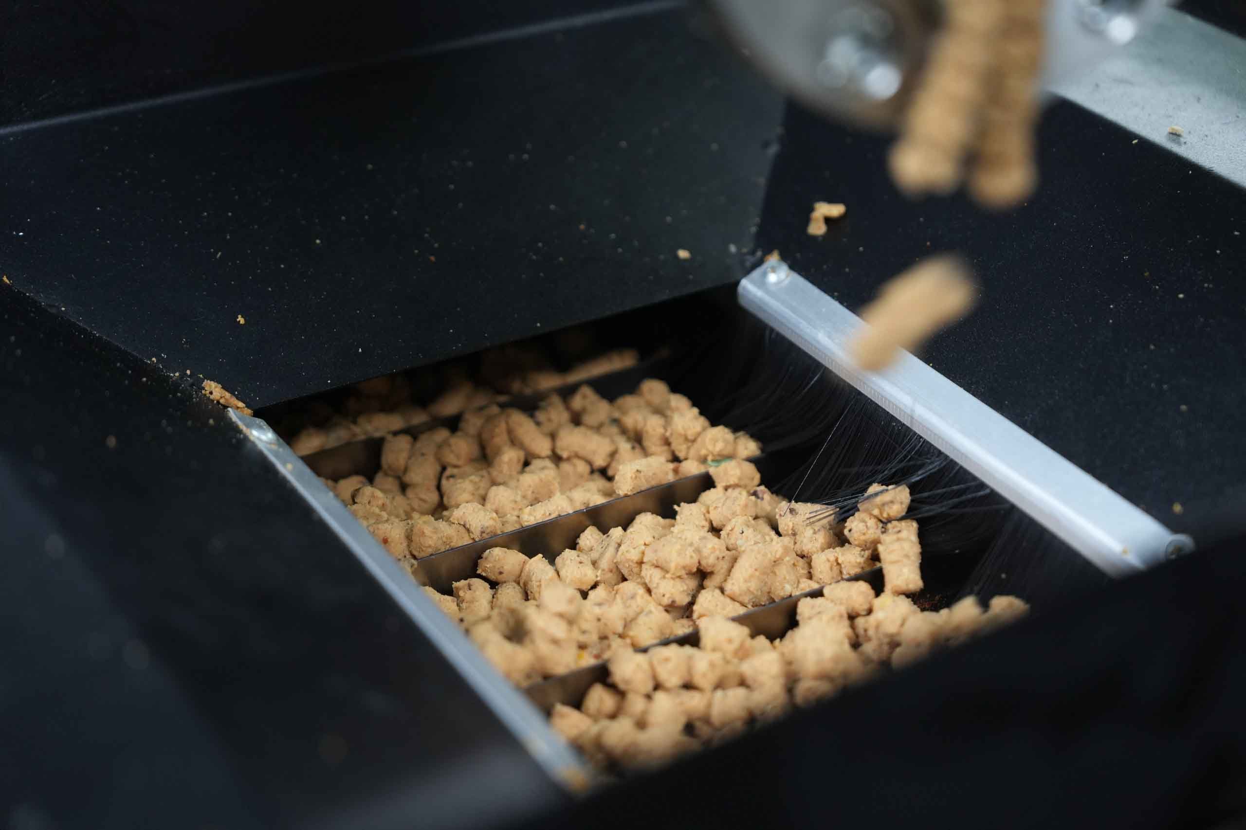 Tesisin işleyişi hakkında bilgi veren Veteriner Hekim Özgür Kaya, üretim sürecinde kırıcı makineler, pişirme kazanları, kurutma sistemleri ve aroma kaplama ünitelerinin kullanıldığını belirterek, günlük yaklaşık 500 kilogram mama üretildiğini ifade etti.