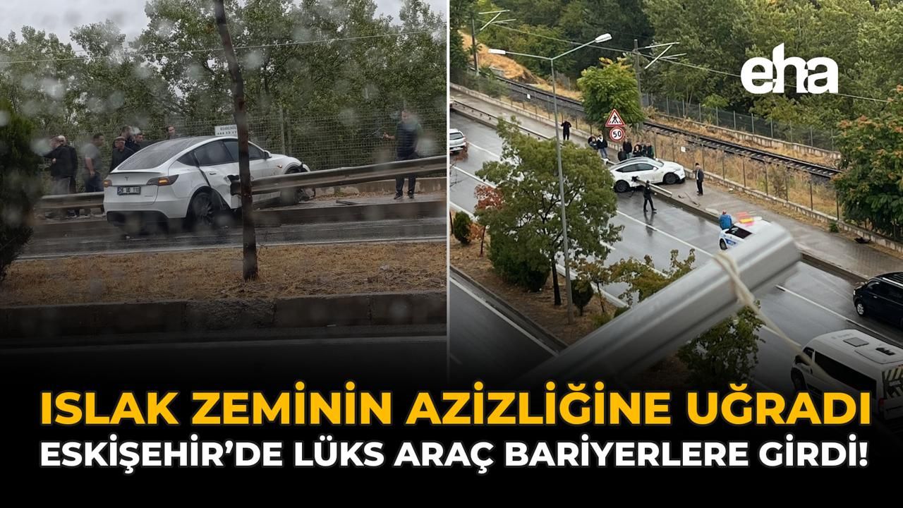 Islak Zeminin Azizliğine Uğradı: Eskişehir'de Lüks Araç Bariyerlere Girdi!