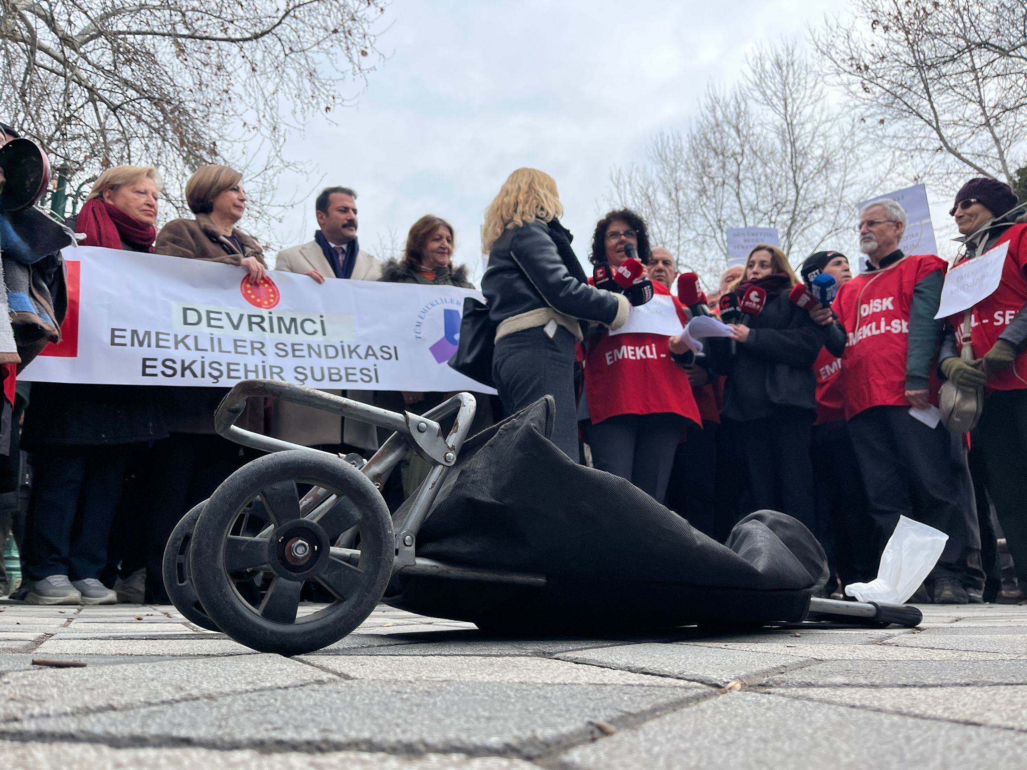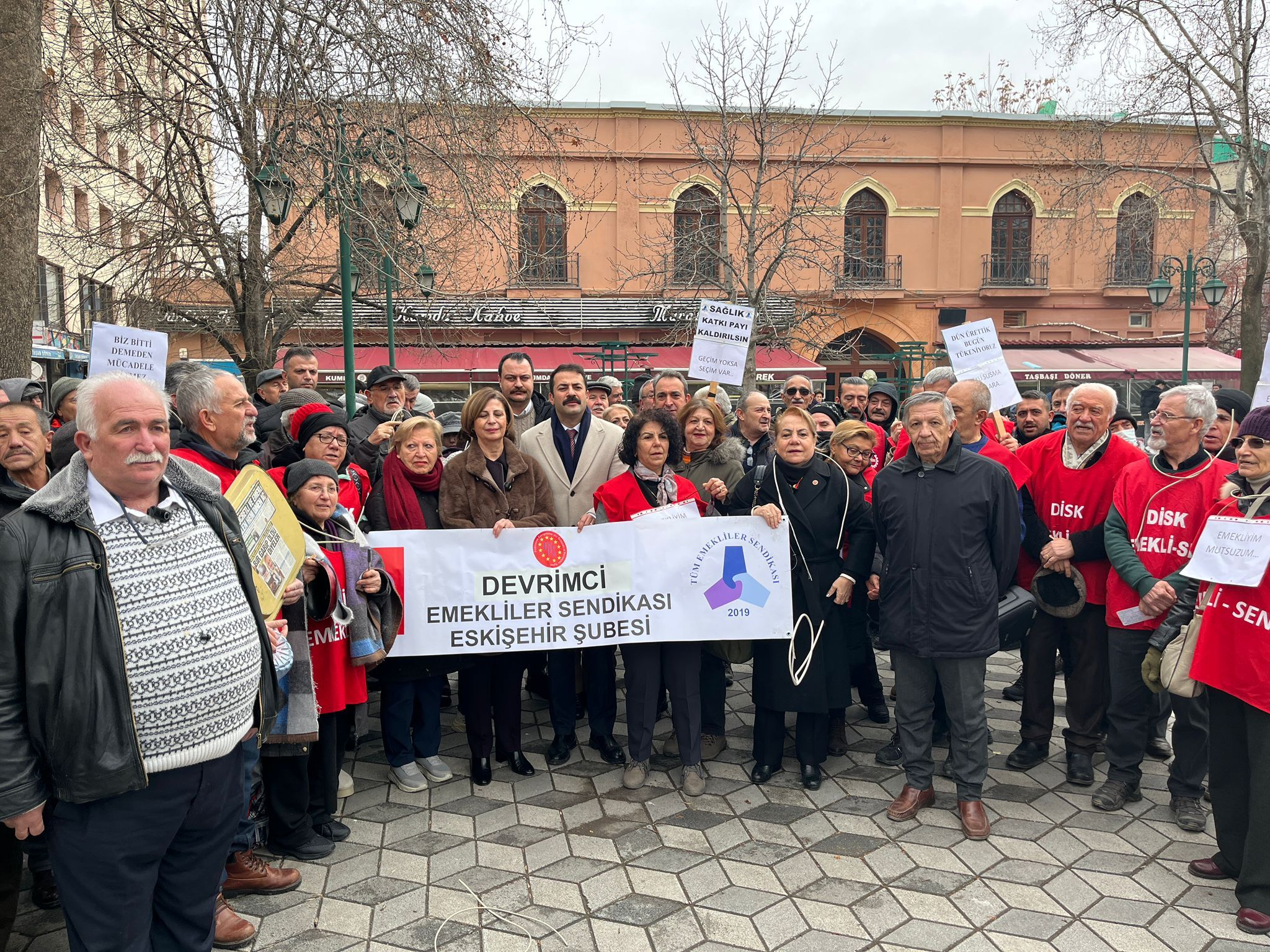 Devrimci Emekliler Sendikası’nın basın açıklamasına Eskişehir Büyükşehir Belediyesi Başkanı Ayşe Ünlüce ve CHP Eskişehir İl Başkanı Talat Yalaz destek verdi.