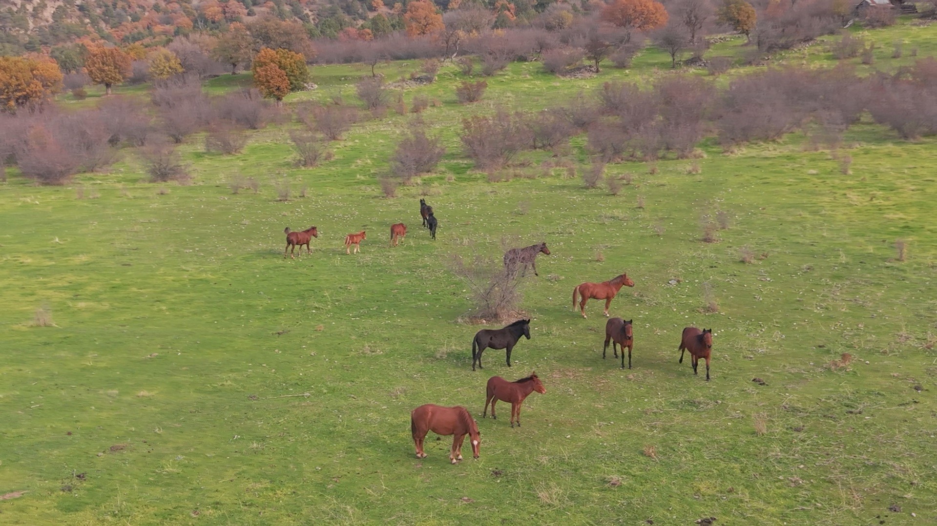 Eskişehir’de kırsal alanda bulunan sonbahar renklerine bürünmüş orman içinde koşturan yılkı atların özgür halleri, Fotoğraf Sanatçısı Haadi Mousavi tarafından dron ile görüntülendi.