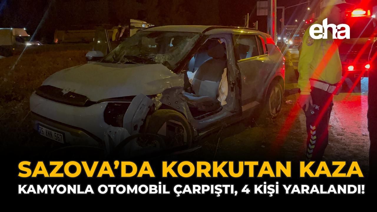 Kaza, Tepebaşı ilçesi Sazova Mahallesi Eskişehir-Kütahya yolunda meydana geldi. Edinilen bilgilere göre, Eskişehir Organize Sanayi Bölgesi’nden (EOSB) porselen hammaddesi yükleyen ve Kütahya’ya doğru giden A.K. idaresindeki 43 AK 852 plakalı kamyon, Ulusal Egemenlik Bulvarı'ndan yola çıkmaya çalışan C.E. (43) idaresindeki 26 ANN 567 plakalı otomobile yandan çarptı. Çarpışmanın etkisiyle refüje doğru savrulan otomobilin içerisinde bulunan 4 kişi yaralandı.