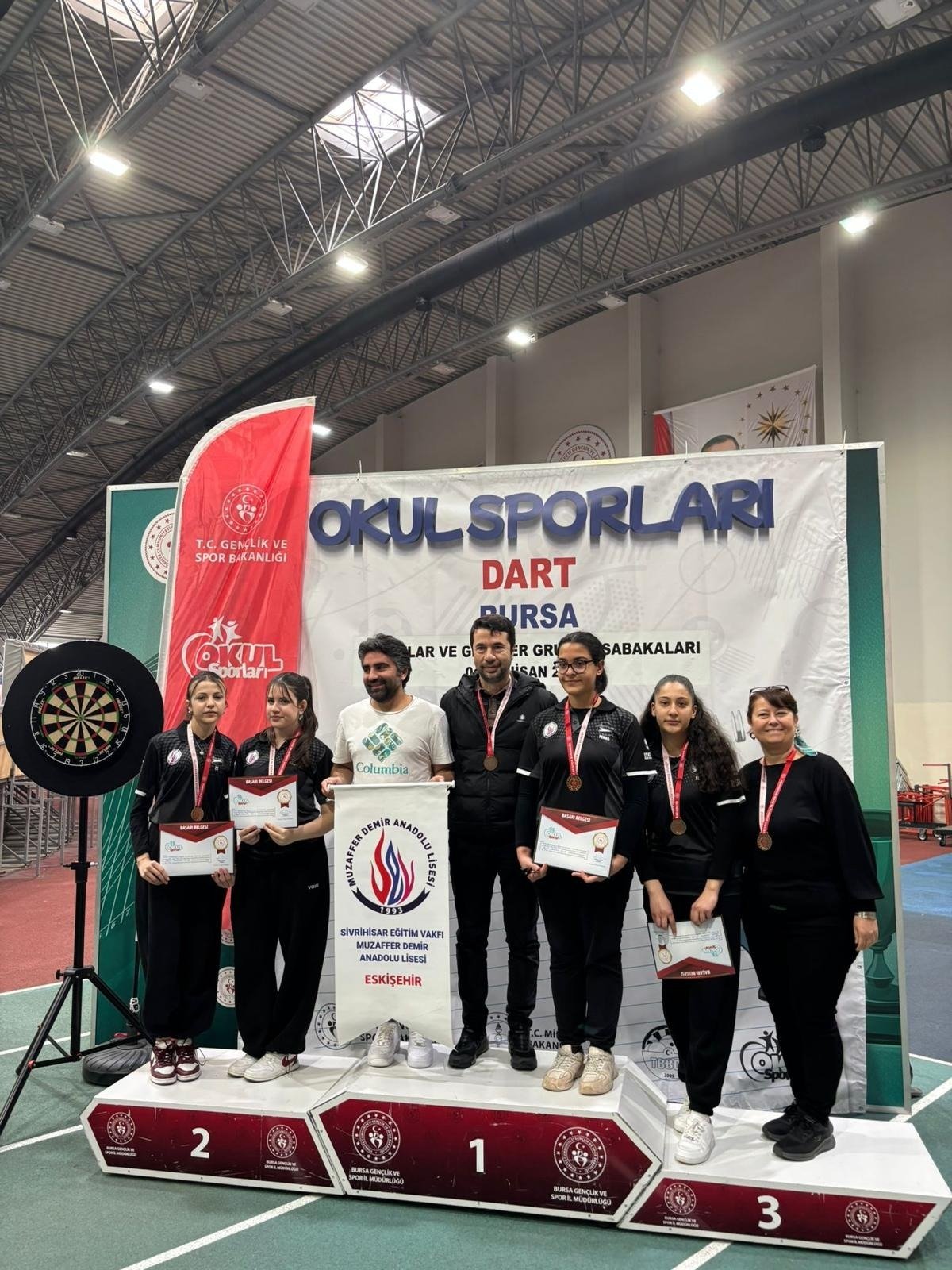 2-4 Nisan 2026 tarihleri arasında Bursa’da gerçekleştirilen ve 21 ilin katılım sağladığı Genç Kızlar Dart Şampiyonası’nda, Sivrihisar Eğitim Vakfı Muzaffer Demir Anadolu Lisesi Dart Kız Takımı önemli bir başarıya imza attı. Turnuvada son dörde kalmayı başaran ekip, Türkiye finallerine katılma hakkı kazandı. Elde edilen sonuçla birlikte Türkiye genelinde son 16 takım arasına giren Sivrihisarlı öğrenciler, 28-30 Nisan 2026 tarihlerinde Muğla’da düzenlenecek Genç Kızlar Türkiye Birinciliği müsabakalarında Eskişehir’i temsil edecek. Başarılarıyla dikkat çeken öğrenciler ile birlikte öğretmen Engin Gezer ve okul idarecileri tebrik edilirken, finallerde başarı temennileri iletildi.
