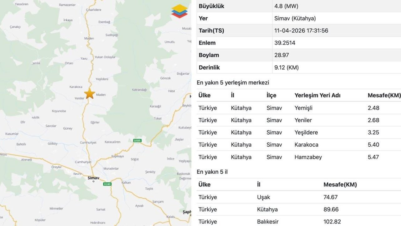 AFAD verilerine göre 4.8 büyüklüğündeki Simav depreminin merkez üssüne en yakın yerleşim yerleri, Kütahya'nın Simav ilçesine bağlı köy ve mahallelerden oluşuyor. Merkez üssüne en yakın ilk beş yerleşim yeri şu şekilde sıralandı: