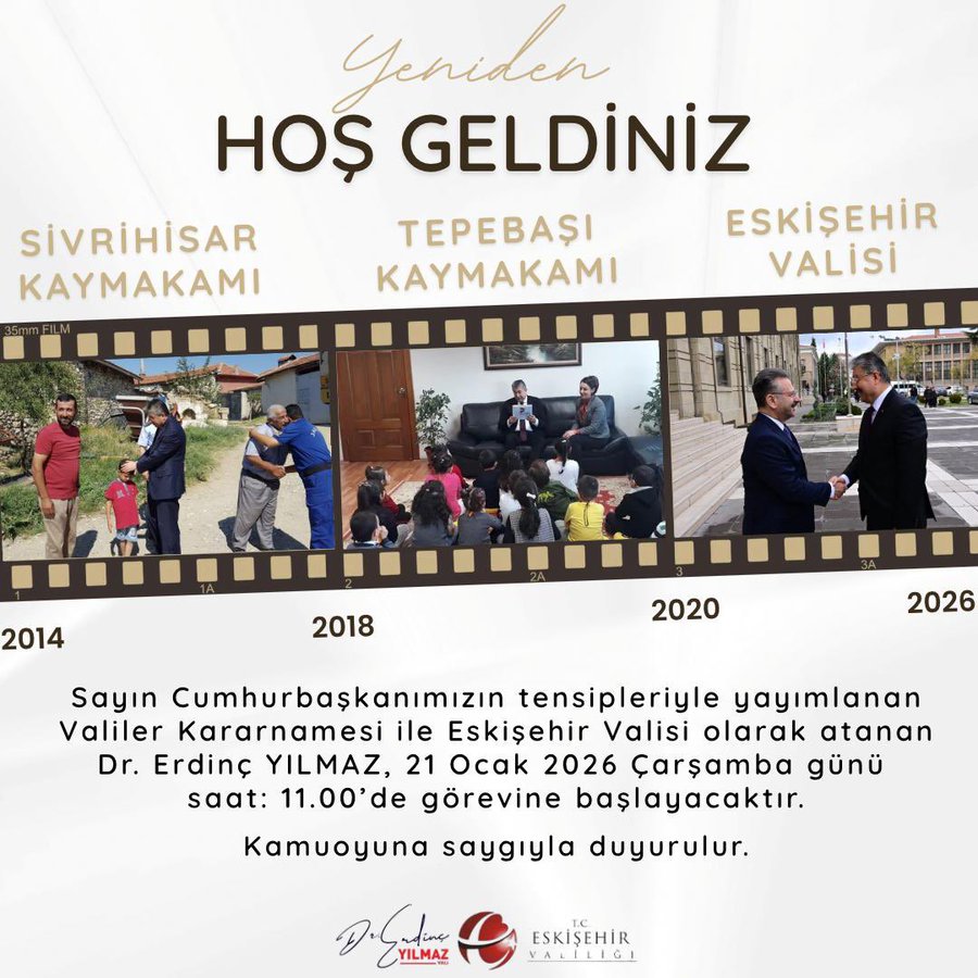 Dr. Erdinç Yılmaz, Eskişehir’i yakından tanıyan bir isim olarak biliniyor. Daha önce Sivrihisar ve Tepebaşı ilçelerinde kaymakamlık görevlerinde bulunan Yılmaz, bu süreçte yerel yönetimler, kamu kurumları ve vatandaşlarla kurduğu yakın diyalogla dikkat çekmişti. Kamu yönetimindeki tecrübesi ve akademik birikimiyle öne çıkan Dr. Yılmaz’ın, Eskişehir’de kamu hizmetlerinin etkinliğini artırmaya yönelik çalışmalar yürütmesi bekleniyor.